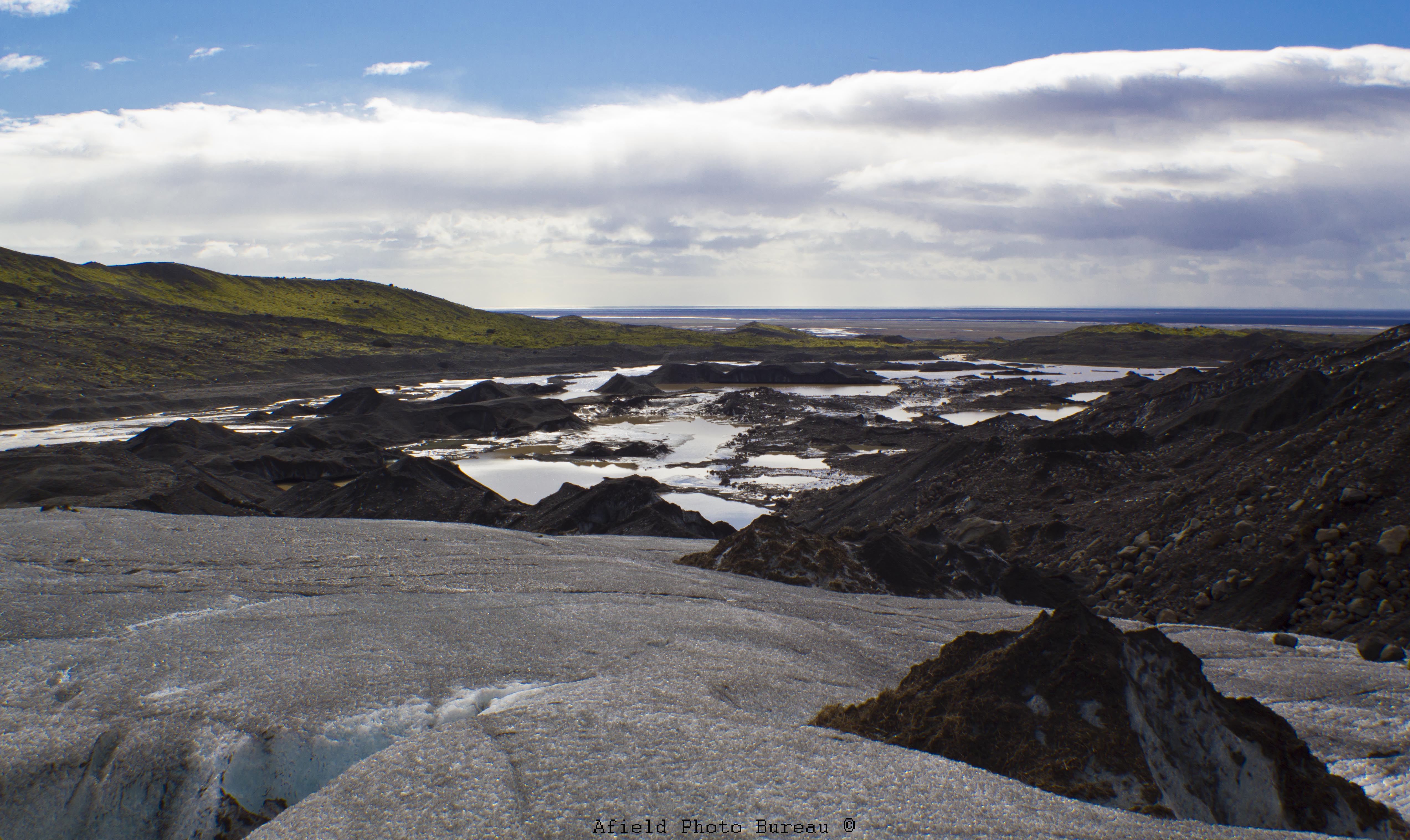 North of Efri-Vik the landscape changes from cliffs and lava fields into the wide floodplain of Skeiðarársandur. Glacial rivers, light brown with silt, flow fast from the Vatnajökull Ice Cap past the bones of bridges that were caught short by one of the catastrophic floods caused by the eruption of Grímsvötn and its neighboring volcanoes. The bridges in this section are long and have only a single lane with small pull-outs for oncoming traffic – crossing them is a bit stressful especially when meeting oncoming trucks, but there is no use building two lane bridges when they’re just going to be washed away within a few years.