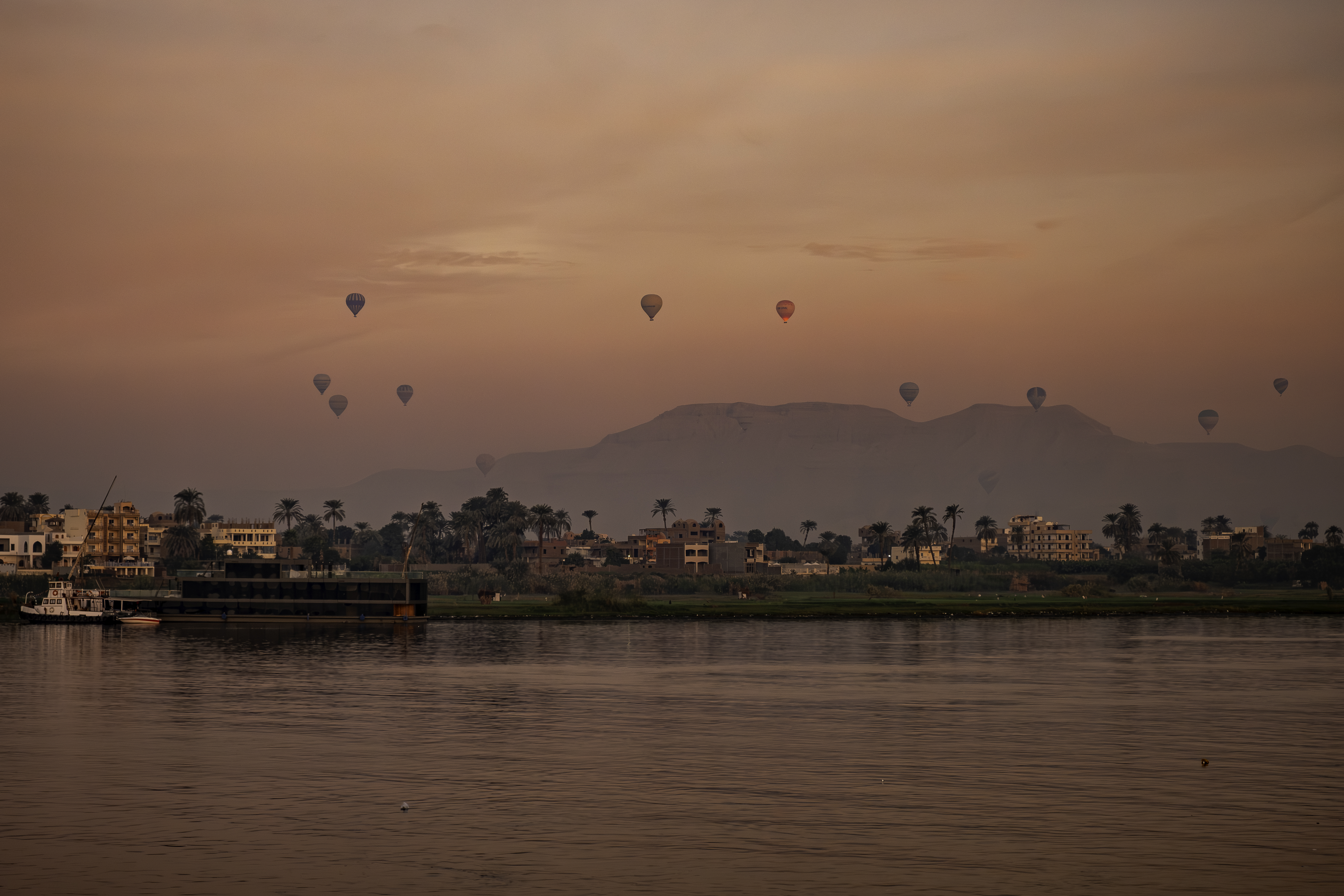 Every day on board we woke up like we were going on the best school field trip ever. The first morning we pulled back the shades to see a whole flight of hot-air balloons rising above the Valley of the Kings. The only noise was the distant hiss of the gas burners giving lift to the balloons in the morning breezes. The Nile doesn’t make a sound as it passes by on it’s way to the Mediterranean. I’ve stood on many shores over the years and never got the feeling that a body of water was going to take me back in time, or, better yet, down in time like the Nile did. I could feel why it was a cradle of civilization.